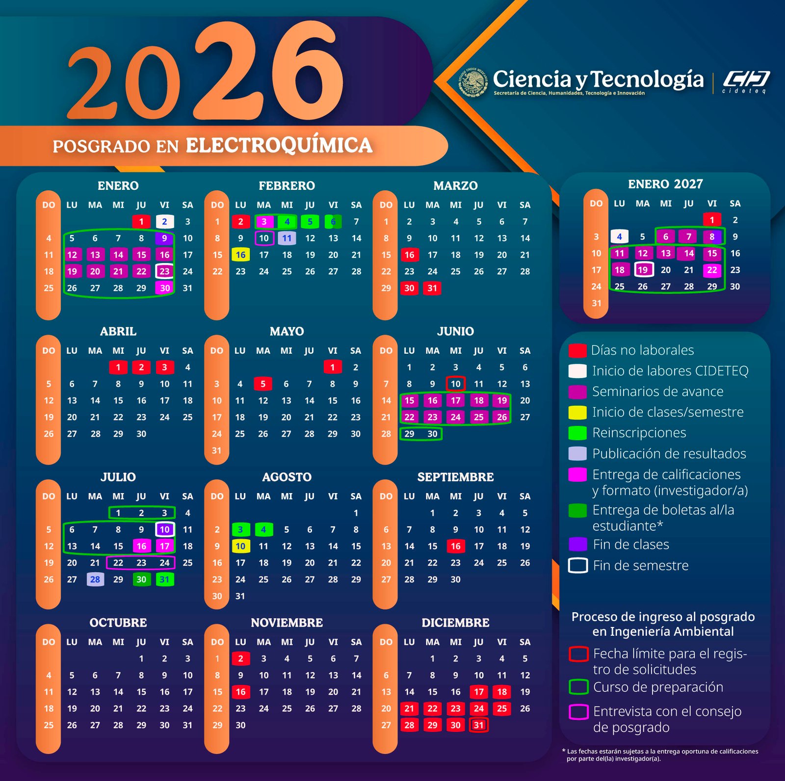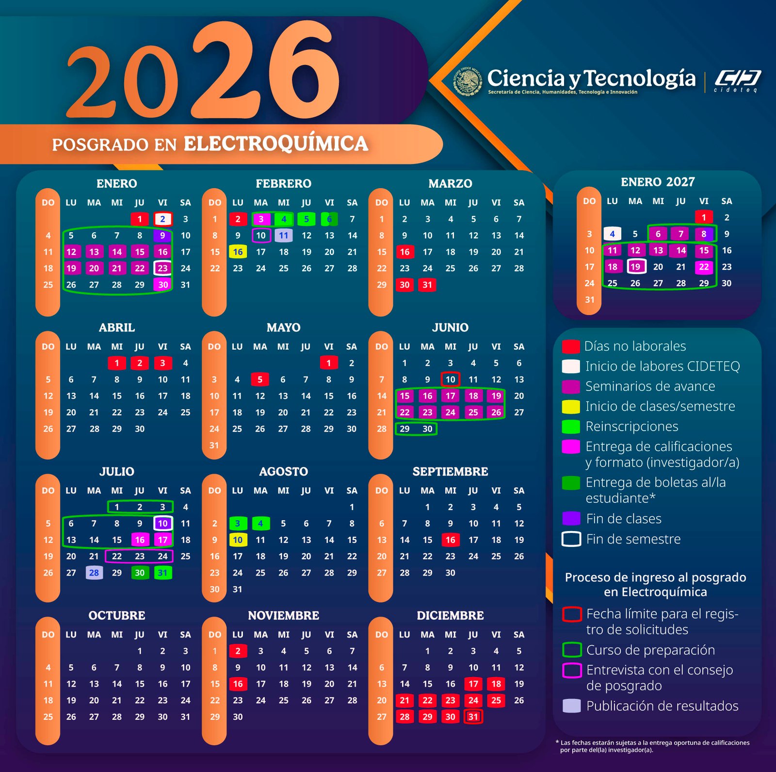 | Periodo de registro | Fecha de aplicación | Entrega de resultados |
